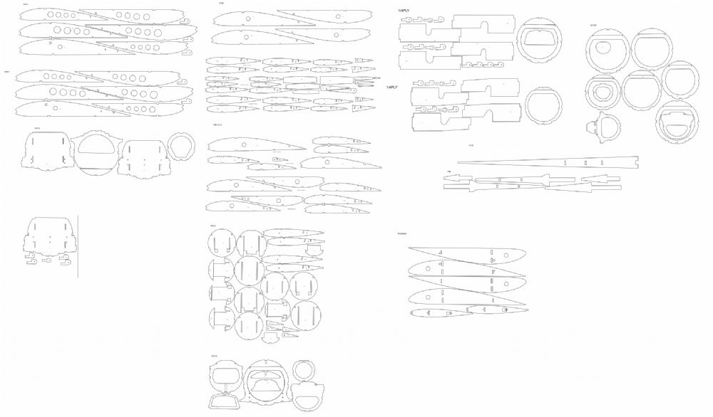 Laser cut parts set containing all the shaped balsa and plywood parts shown on the plans including formers, wing ribs, nacelle components, firewalls, tailplane and fin/rudders parts plus many smaller items.